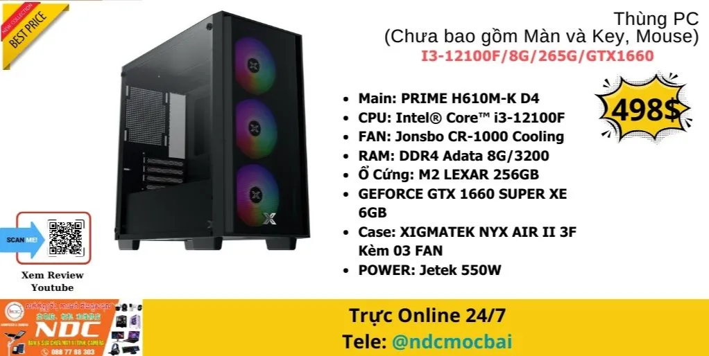 PC i5 10400F RAM 16G (8X2) SSD 512G VGA 1050